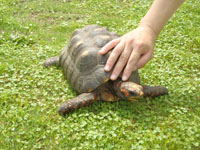 アマゾン館地下部分にはワニガメが飼育されています。このワニガメは、長崎港で保護された個体で、警察を通してバイオパークで飼育することになりました。また、園内ではあちこちでカメを飼育しており、レッサーパンダの池で日向ぼっこをしているミシシッピーアカミミガメやフラワードームの地下でこっそり暮らしているクサガメなどもみることができます。その他にもペットハウス(別途200円必要)では、カメの他にヒョウモントカゲモドキやトッケイヤモリ、ヘビ類を展示しています。アカアシリクガメやヒョウモントカゲモドキは触ることも出来ます。